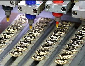 烤漆是在徽章制造中的一種噴漆制作方法(工藝)。其方法是:在打磨到一定粗糙程度的基底上滴上若干層亞克力油漆。并經(jīng)高溫烘烤定型。 該工藝目前對(duì)油漆要求較高,顯色性好??酒峄照碌闹谱鞑牧弦话銥殂~、鐵、鋅合金等,其中以鋅合金、鐵質(zhì)、青銅用的最多,其表面多具有明顯的凹凸感,質(zhì)感好,適合一些中高檔徽章的制作。制作流程:設(shè)計(jì)制圖——出黑(凸起)白(凹下)菲林——曬版——咬版——刻模——切模——沖壓——拋光——電鍍——焊配件——上色(烤漆)——加波麗——烘干——品檢——包裝——出貨。